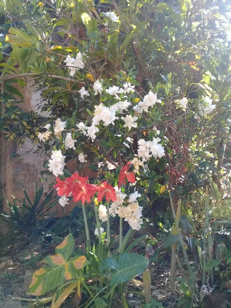 E além dessa variedade, havia também rosa- (Japão), adália, palmas, crisandália, hortênsia, manacá, jardineira, buganville, campainha da glória, sempre viva, perpétua, acácia, jasmin, cravo e cravinas. Flores artificiais para enfeitar as igrejas, em sua época nunca foi necessário. (Abaixo, ilustração do jardim de Geralda, homenagem e andores).